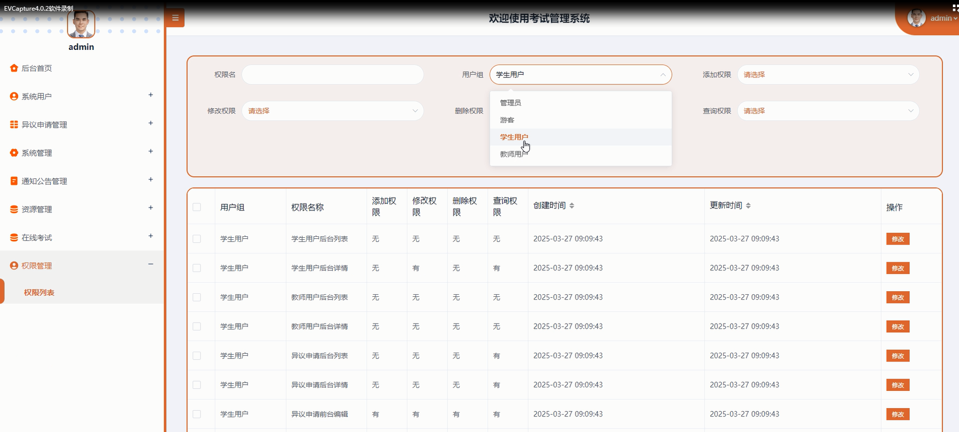 图5-12权限管理界面