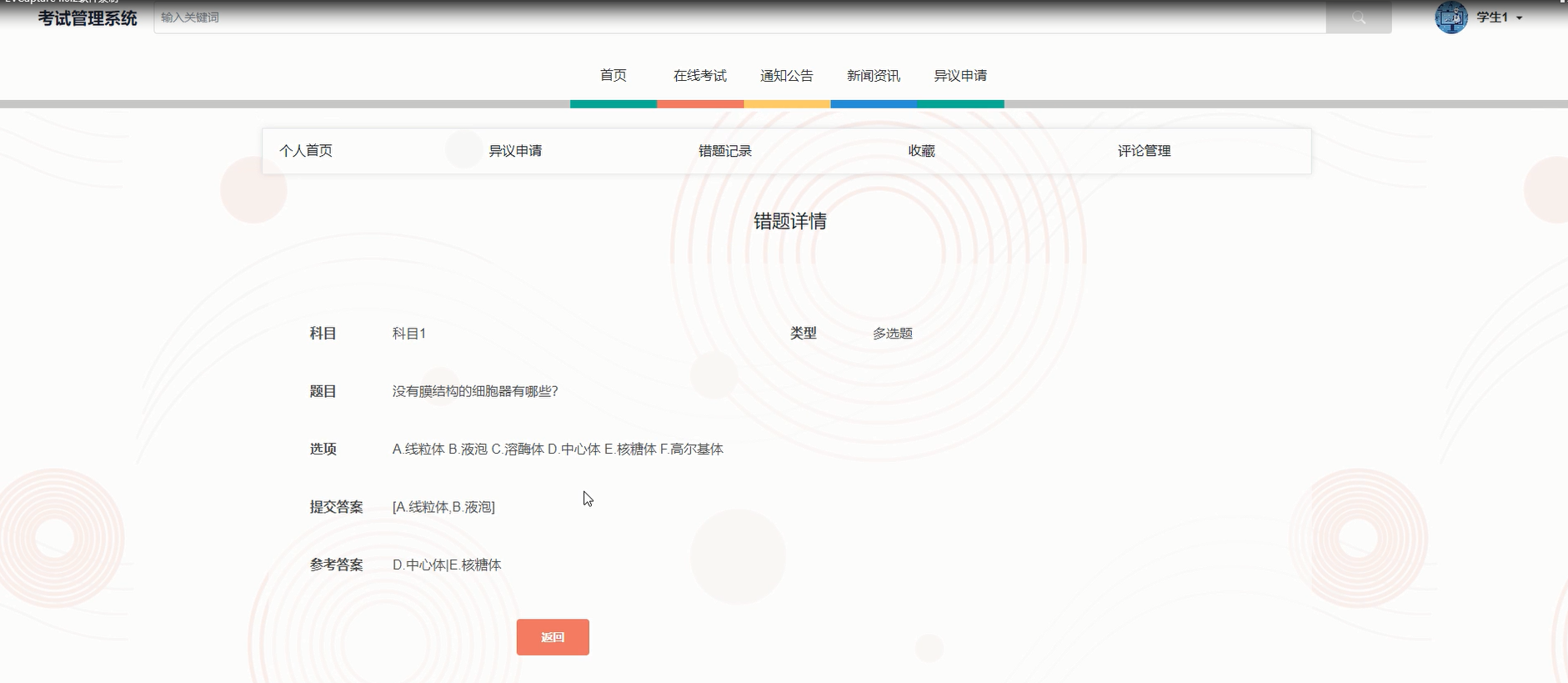 错题记录:系统自动保存学生考试中的错题,学生可在此模块查询、删除错题记录,也可通过科目名称和题目名称进行精准搜索。