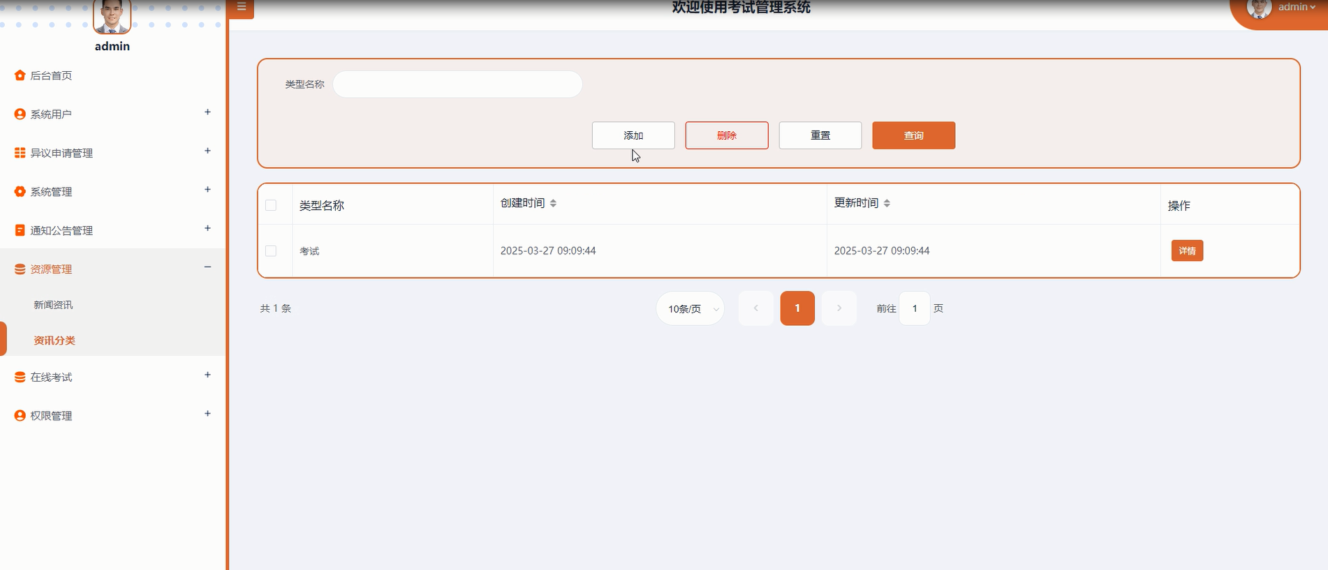 科目列表管理:管理员可以查询、重置、删除、添加考试科目列表,确保系统中的科目信息准确无误。
