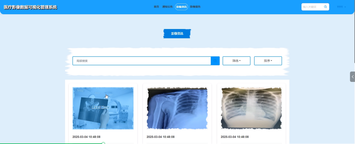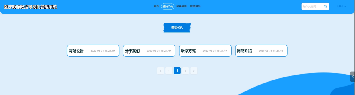 - 通知公告:首页界面是用户访问系统的入口页面,用户可以查看首页展示的轮播图、影像资讯等信息并进行相关操作。
