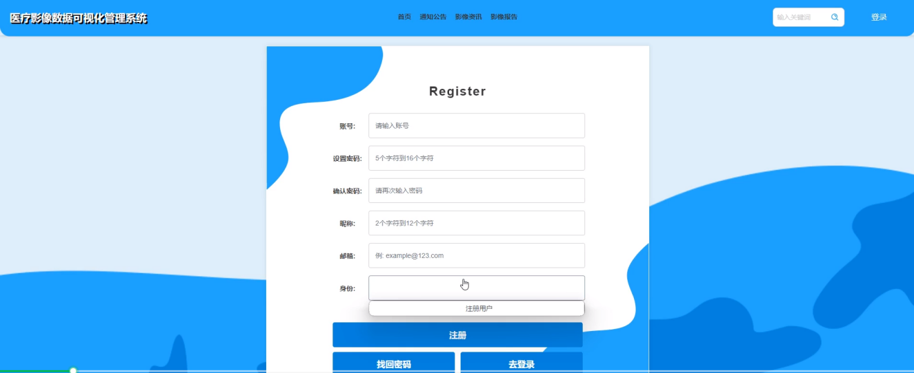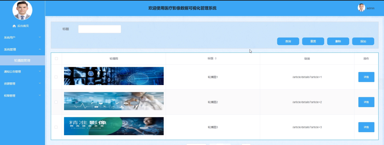 - 首页:首页界面是用户访问系统的入口页面,用户可以查看首页展示的轮播图、影像资讯等信息并进行相关操作。