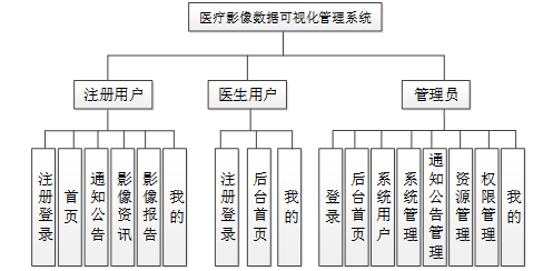本系统分为注册用户、医生用户和管理员这三大用户模块,各用户模块的具体功能说明如下: