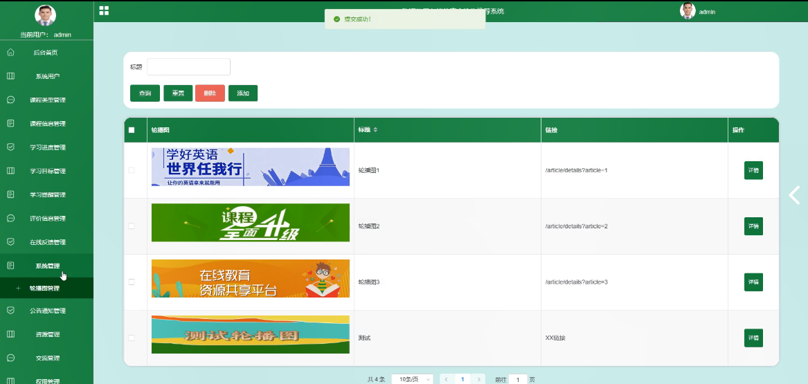 管理首页或关键页面的轮播图内容,包括上传、删除和排序,提升平台视觉效果与宣传力度。系统管理界面如图5-13所示。
