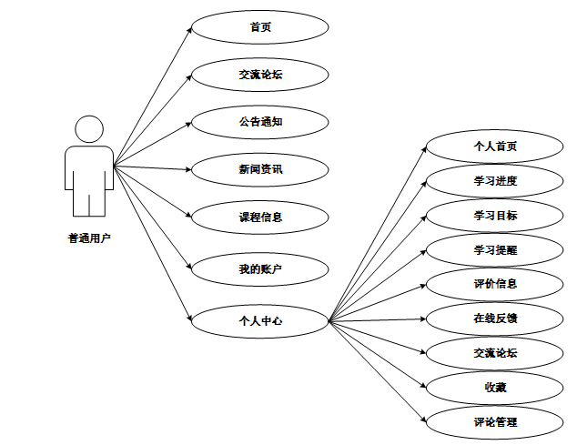 普通用户可查看首页、交流论坛、公告通知、新闻资讯、课程信息、我的账户、个人中心。