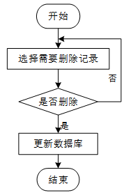 用户选择需要删除的记录后,系统判断是否确认删除。若未确认,返回选择环节;若确认删除,则更新数据库,删除对应记录,完成操作后流程结束。删除信息流程图如图3-8所示。