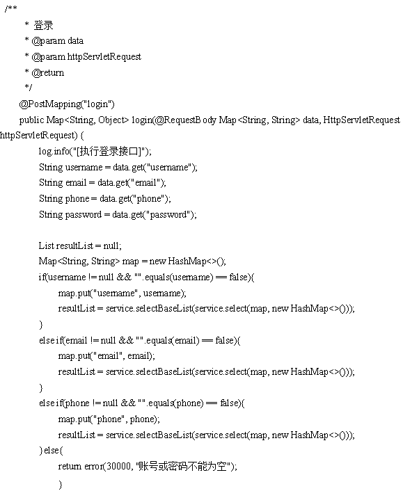 登录页,首先传入"username"、"email"、"phone"、"password",用户可通过用户名、邮箱、手机号进行登陆,通过判断resultList来确定查询结果,然后执行查询用户组UserGroup,用户组里面不存在,依然报“用户不存在”,执行完以上代码,最后涉及到用户带有“审核”的,会查询examine_state(用户的审核状态),数据库表user_group中含有source_table和source_field进行查询,以上步骤完成,对输入的密码进行存储Token到数据库,匹对账号和密码,数据库中的AccessToken为令牌,用于身份认证,其代码如下: