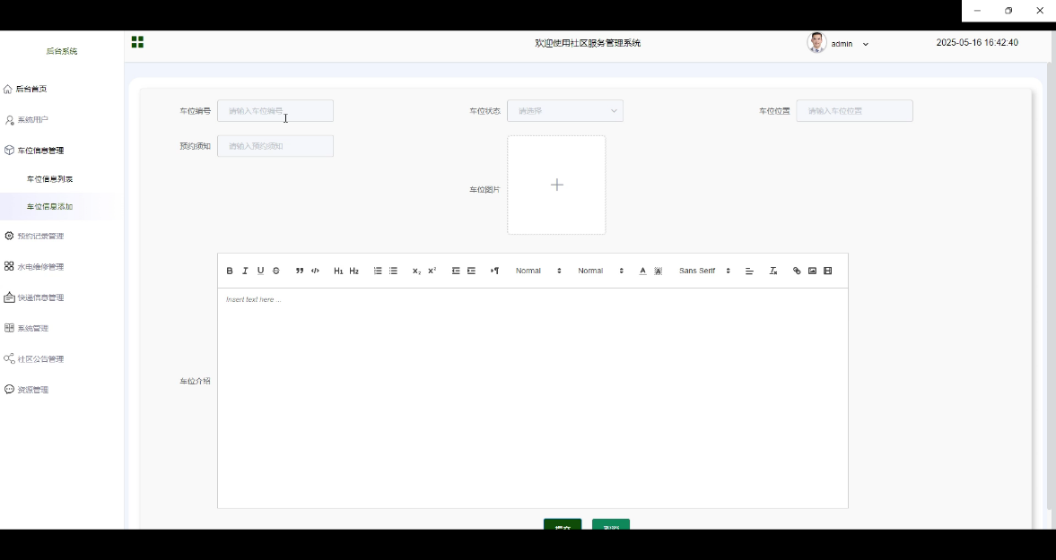 图5-9 车位信息添加界面设计