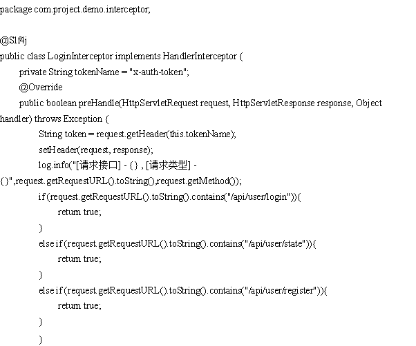 登陆接受管理器,在interceptor文件夹下的LoginInterceptor.java文件,控制请求头代码如下: