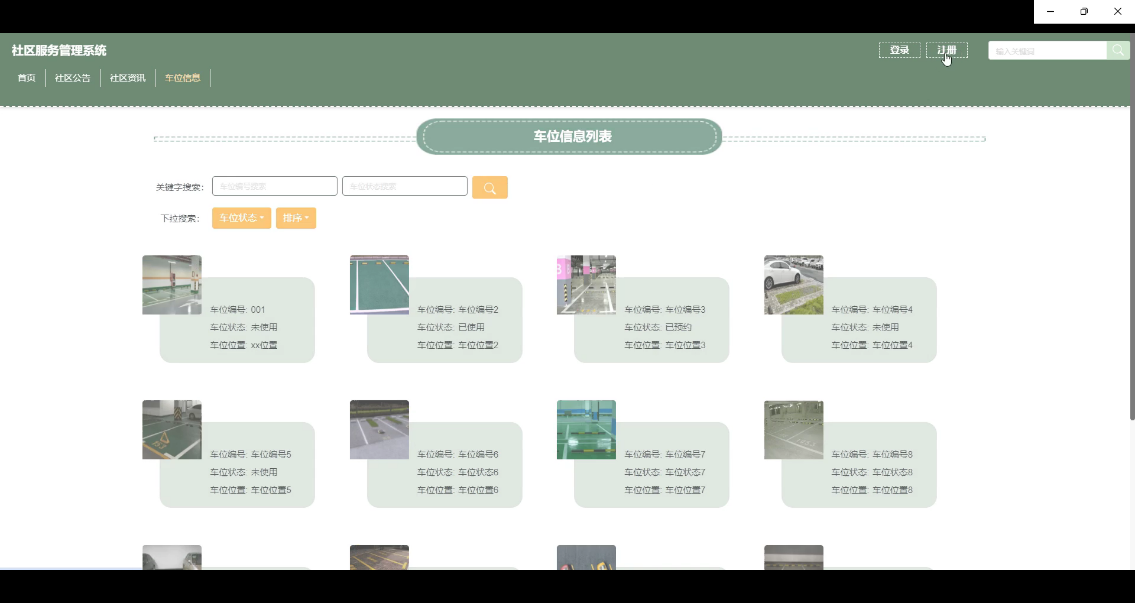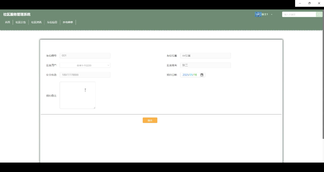 系统功能涵盖业主用户的首页浏览、社区公告查看、车位预约、水电报修、快递信息查询及个人中心管理,同时为管理员提供用户管理、车位审核、维修处理、资讯发布等后台功能。通过前后端分离架构,提升开发效率与系统可维护性。系统的应用有助于优化社区服务流程,提高物业工作效率,增强居民满意度,推动社区治理向数字化、智能化方向发展。