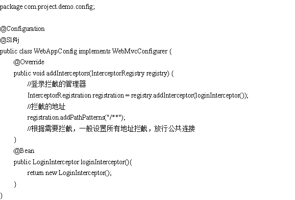 登陆拦截管理器,在config文件夹下的WebAppConfig.java文件,代码如下: