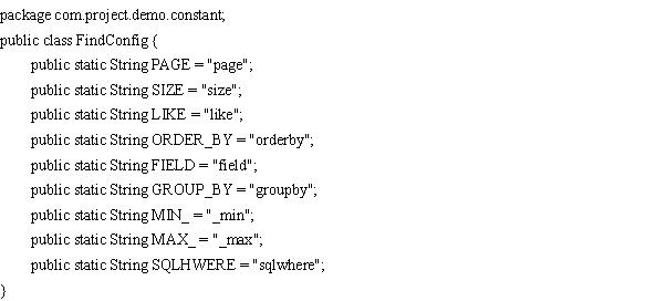 组装sql语句,在constant文件夹下的FindConfig.java文件,代码如下: