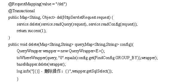 删除一条数据,通过readQuery(),获取URL后面的对象地址,删除FROM具体的table,query删除查询FindConfig语句,代码如下: