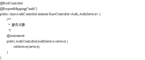 ,Controller 均继承自BaseController,注入两个对象,一个是实体类(以Auth为例),另一个是其AuthService: