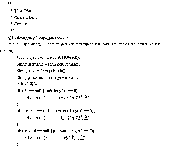 找回密码,接收用户输入的用户名、密码、验证码,并进行条件判断,代码如下: