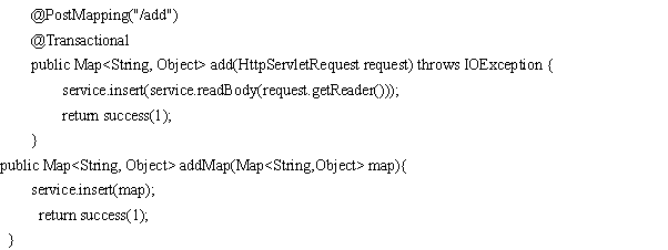 新增一条数据,通过post传入一个json对象,然后经过request.getReader(),最后经过readBody()转成一个Map,含有String和Object,key用的是字段名,Object存放数据,最终得到Map,insert用拼装sql,读取body,组装成一个insert对象,runCountSql()语句,代码如下:
