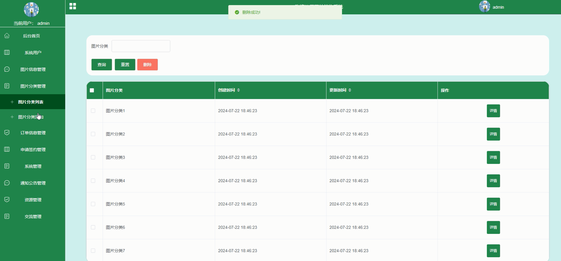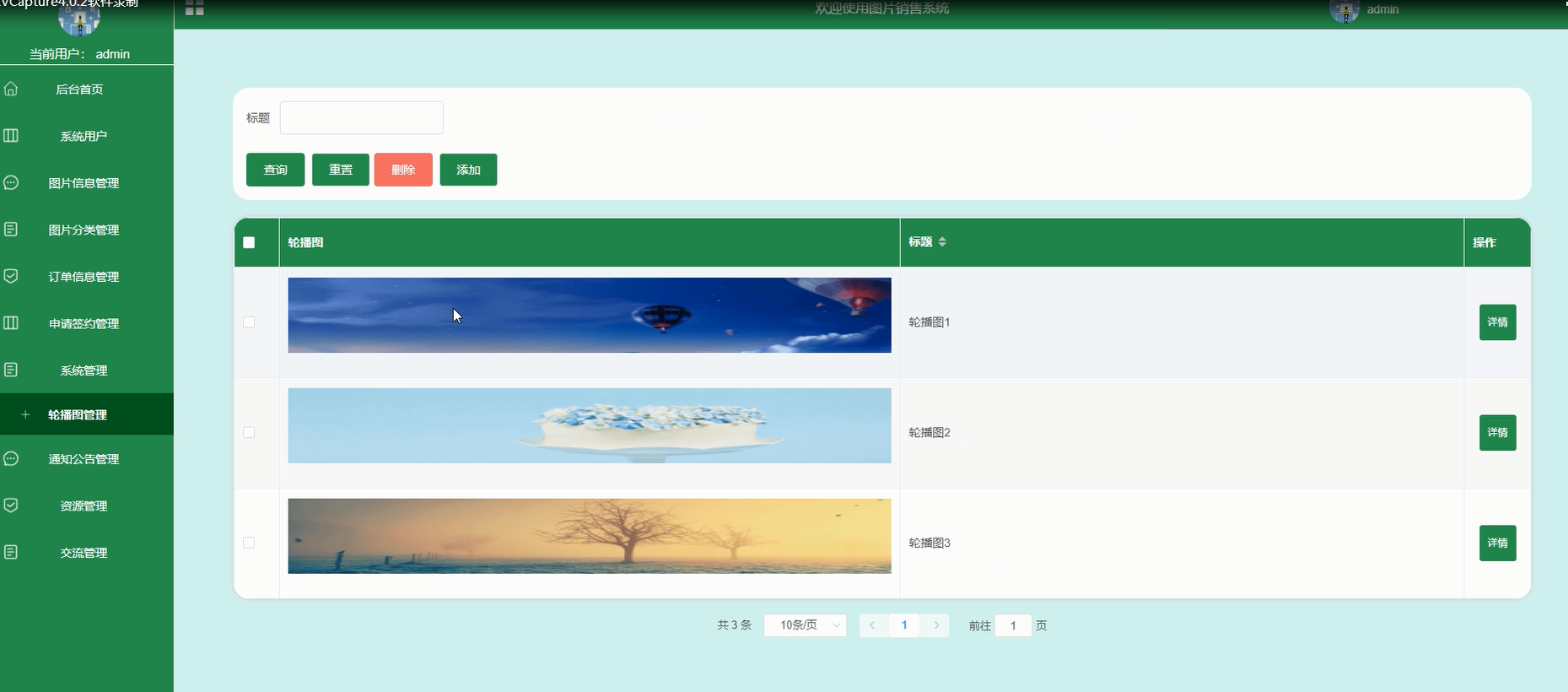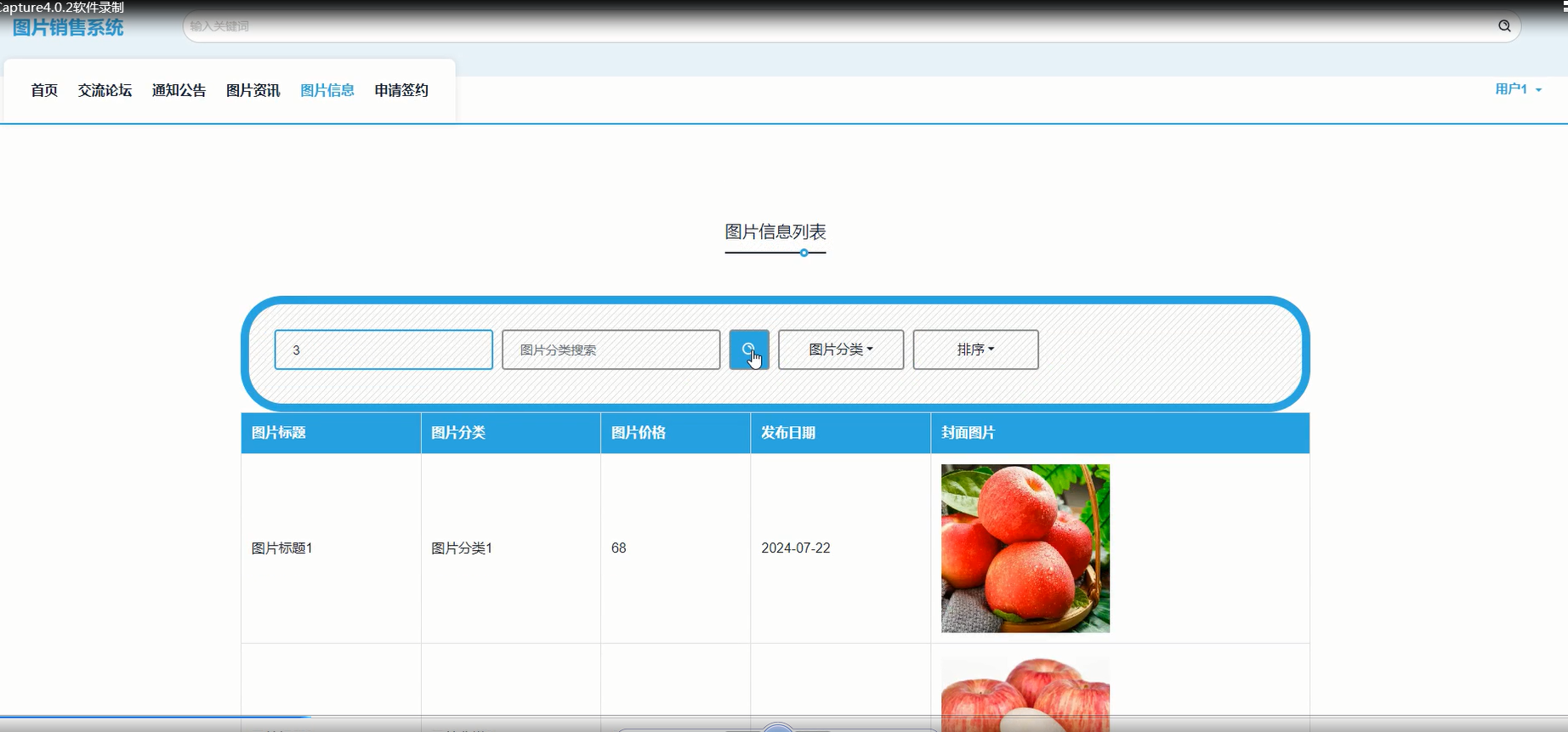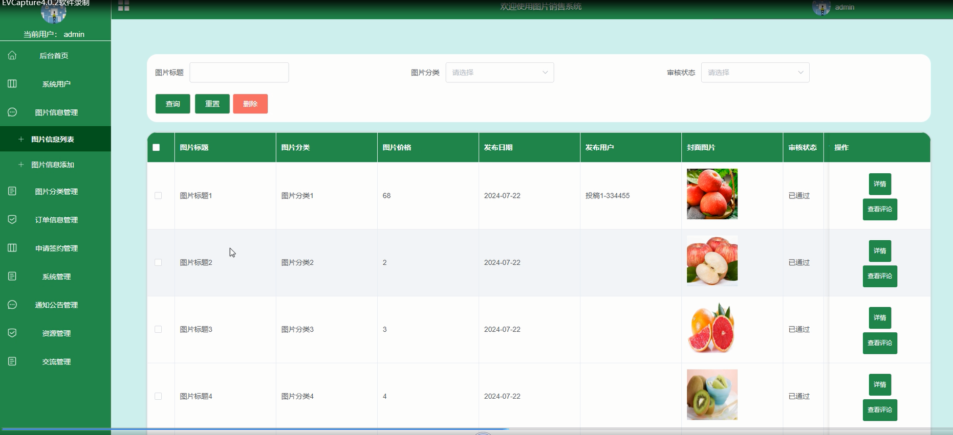 该系统采用Spring Boot框架进行开发,其界面设计简洁明了,操作便捷,能够显著提高用户的管理效率和管理水平,降低交易风险,并最终提高交易效率和收益。本系统的应用,将为图片销售行业带来更高效、更便捷的服务,满足用户不断增长的需求。