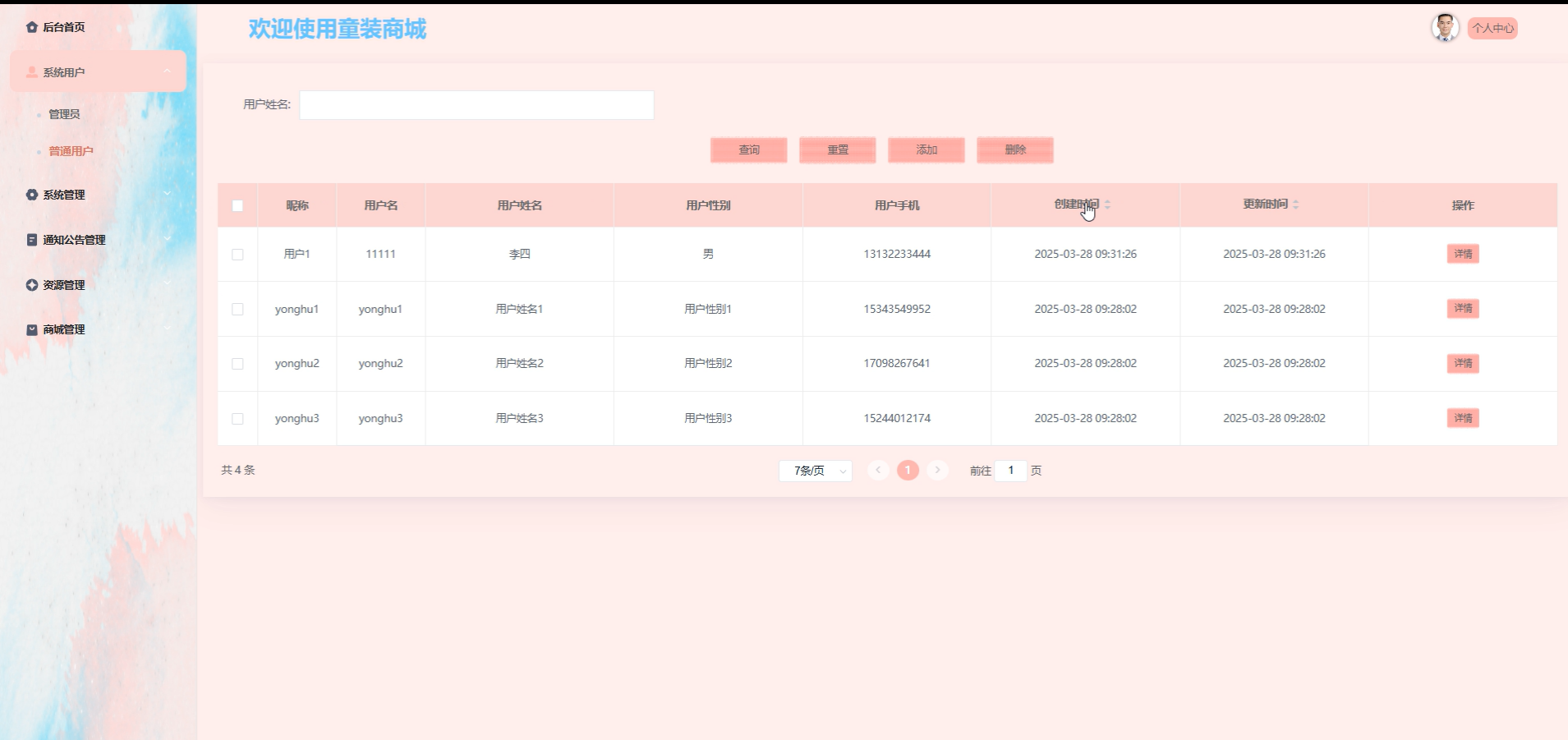 管理员负责处理用户订单,包括查看订单详情、管理订单配送状态、处理售后服务请求,确保订单的高效履行与用户满意度。商城管理界面如图5-12所示。