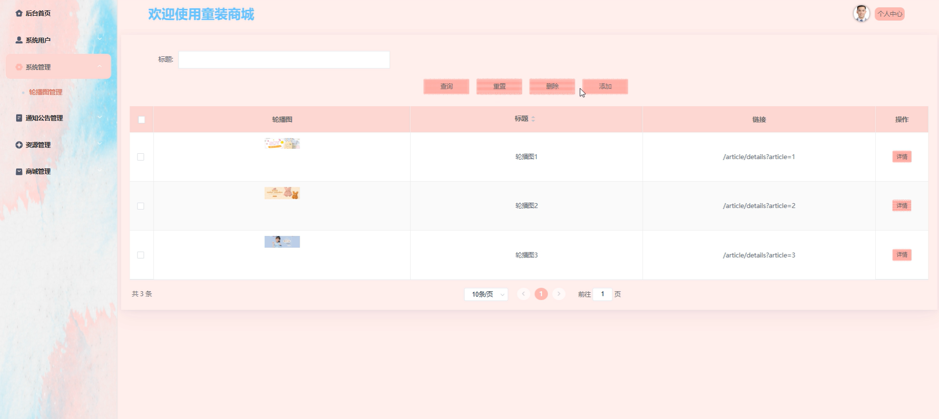 管理员能够上传、删除或更新商城首页的轮播图,方便展示促销活动或新商品信息,提升用户体验和商城的营销效果。系统管理界面如图5-10所示。