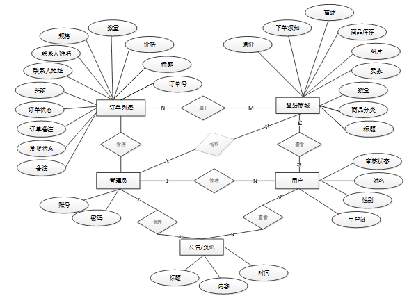 概念设计是数据库设计的第一步,其主要目标是对系统的数据需求进行全面的理解和抽象[18]。在这一阶段,通过建立实体-关系模型(ER模型)来识别系统中的关键实体、属性及其相互关系。概念设计的输出是一个清晰的ER图,作为后续数据库表设计的基础。以下将展示系统的全局E-R图以及各个实体的属性图。