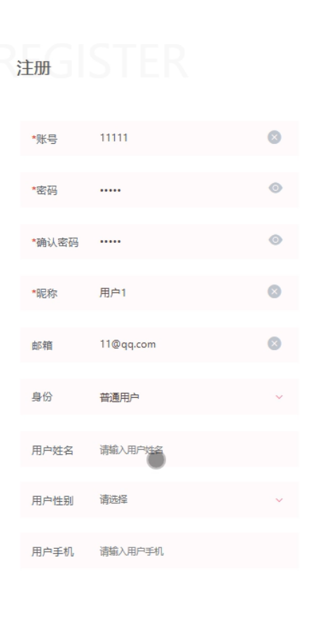 用户需通过注册功能创建个人账号,填写必要的个人信息(如用户名、密码、联系方式等),并完成邮箱或手机验证码验证。注册后,用户可以通过输入账号和密码进行登录,进入系统主页。注册登录如图5-1、5-2所示。