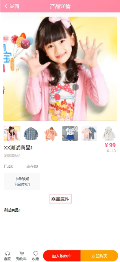 购物车:用户可以将选中的童装商品添加到购物车,方便管理商品清单,进行结算前的修改和确认,提升购物的灵活性和便捷性。