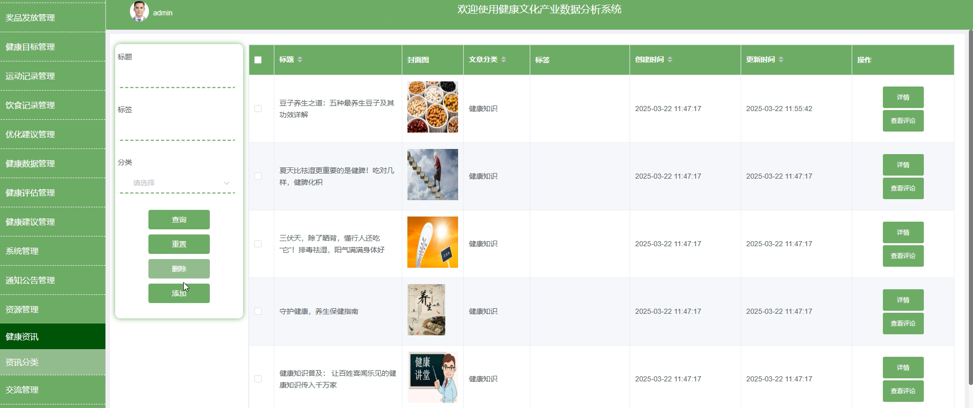 资源管理:管理系统内的健康资讯资源,对资讯进行分类、审核和发布。为用户提供丰富、准确的健康资讯。其界面图如下。