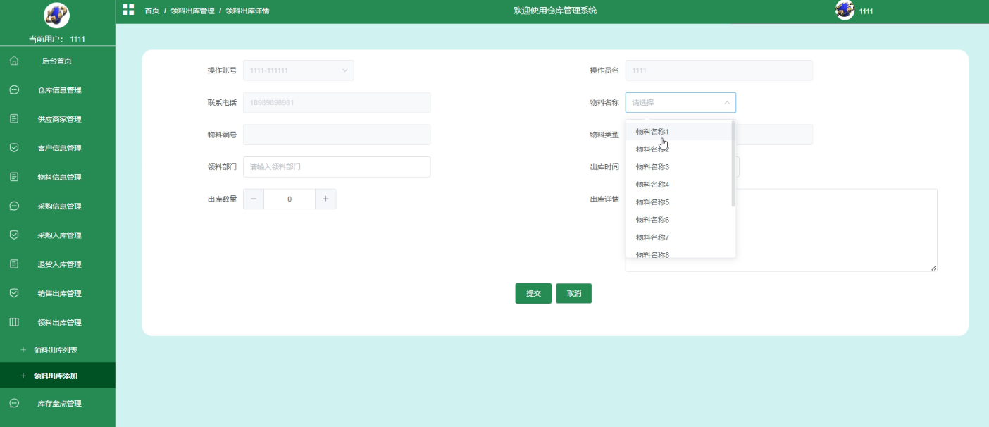 - 领料出库管理:领料出库管理模块提供了添加、删除和查询领料出库记录的功能。管理员还可以查看详细信息,以确保物料领用的合理性和准确性。