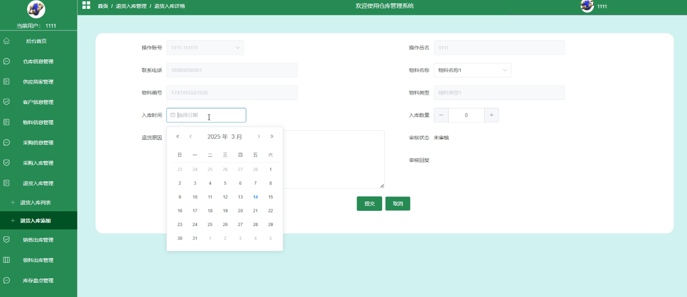 - 退货入库管理:用户可以在此模块中查询退货入库的相关信息,包括退货的物料名称、数量、退货原因等。点击查询结果,用户可以查看退货入库信息的详细情况,并进行审核操作,确保退货流程的合规性。