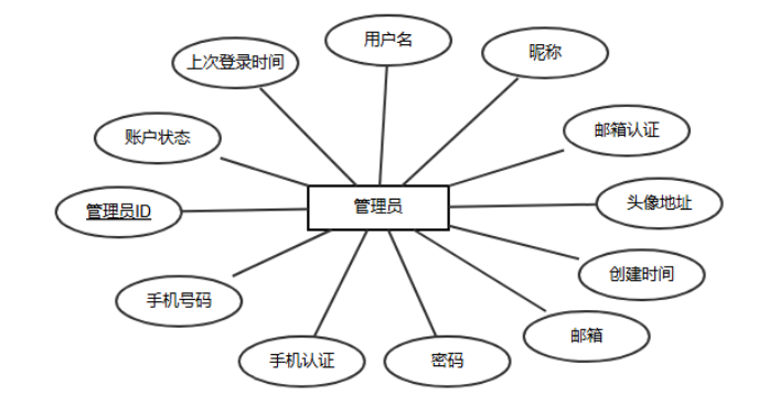 管理员实体有管理员ID、用户名、密码、邮箱等。管理员实体如图4-10所示。