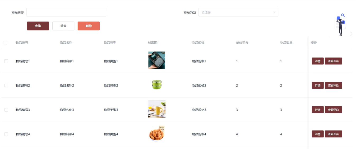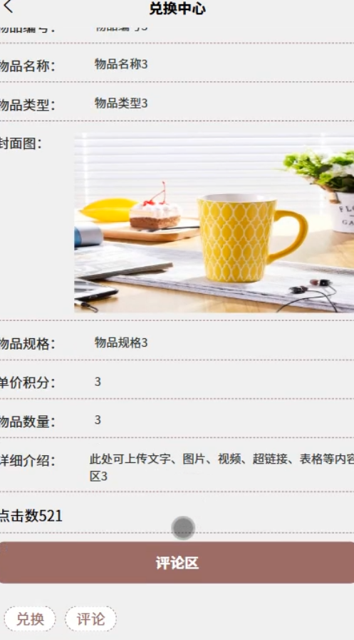 用户可以在兑换中心浏览所有可兑换的物品,并查看每个物品的详细信息。用户可以根据自己的积分余额选择物品进行兑换,兑换后系统会扣除相应的积分。用户还可以对物品进行评论,分享个人使用体验。兑换中心界面如图5-2所示。