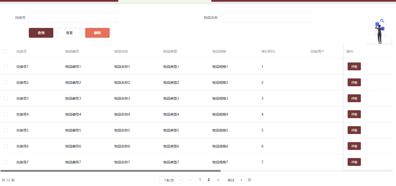 管理员可以查询、重置、删除所有兑换记录,并对用户的兑换行为进行管理。管理员可查看每一笔兑换交易的详细信息,并做出相应的调整。兑换记录管理界面如图5-12所示。