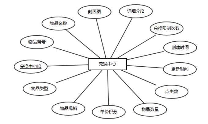 兑换中心实体有物品编号、物品名称、物品类型、单价积分等。兑换中心实体如图4-5所示。
