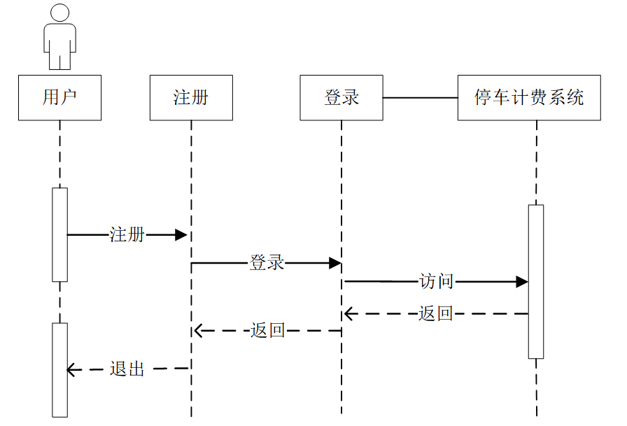 用户通过注册模块发送注册请求,系统完成注册后返回确认信息。随后,用户通过登录模块发送登录请求,系统验证用户信息后允许访问目标系统。用户完成操作后可选择退出,系统终止会话。注册时序图,如图4-3所示。