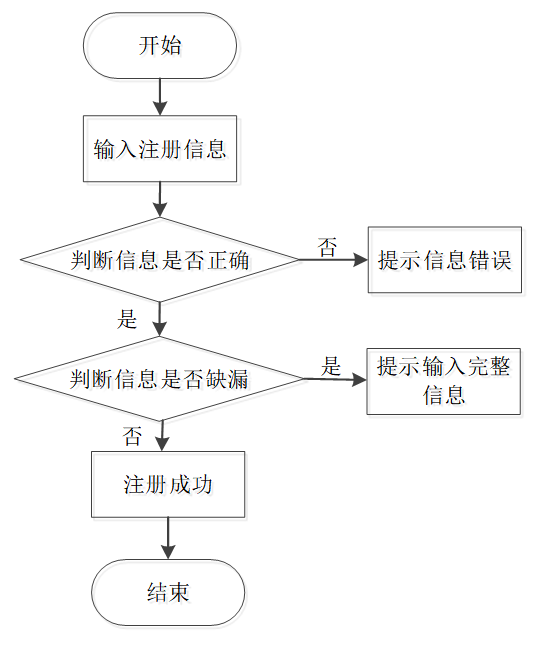 未有账号的用户可进入注册界面进行注册操作,填写注册表格,包括用户名、密码、电子邮件等必要信息。后台系统验证并保存用户提交的信息。分配唯一用户标识符。注册成功后,用户可以使用账号密码进行登录。用户注册流程图如下图所示。