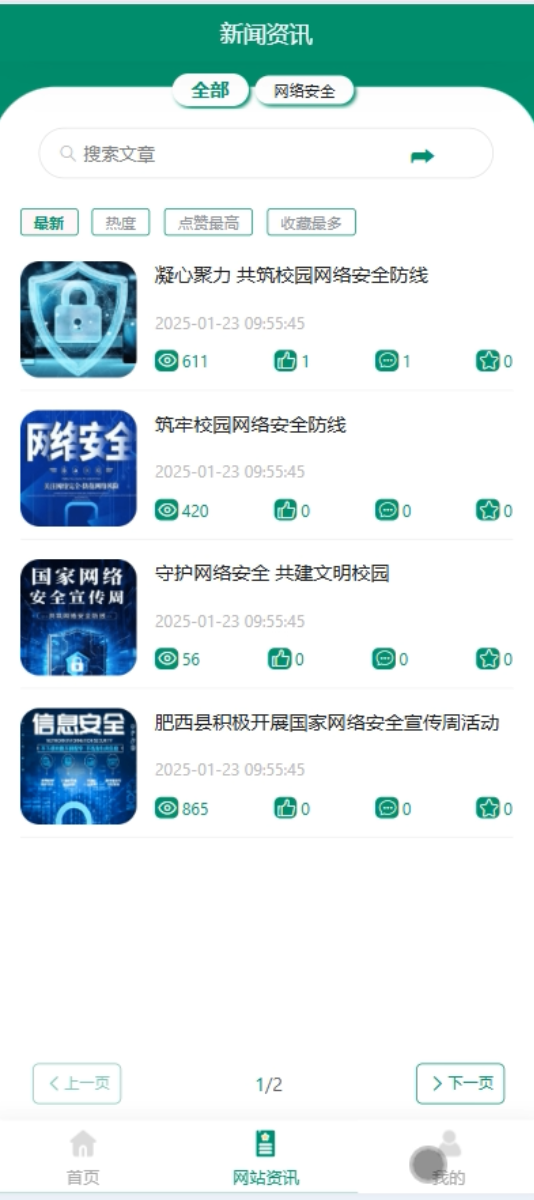 - 网站资讯:当用户点击首页的“网站资讯”时,可查看管理员发布的系统公告内容。