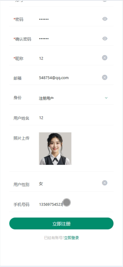 - 注册登录:提供注册登录功能,游客可以通过注册成为系统用户,使用账号密码可登录系统前台,使用权限内功能操作。