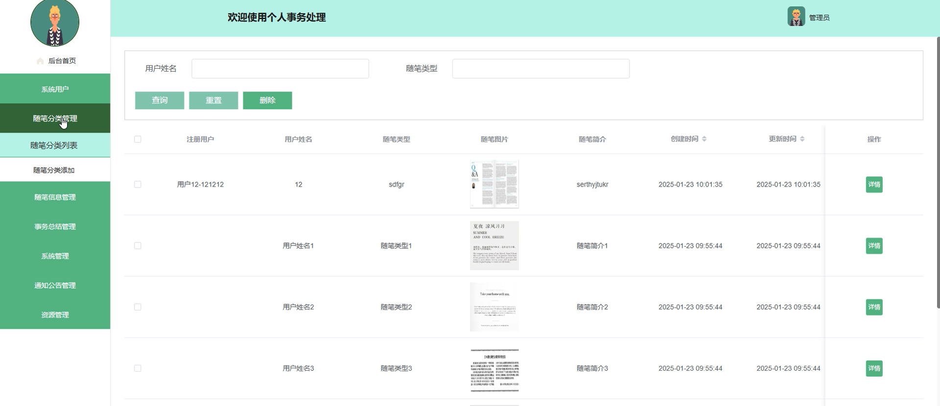 - 随笔信息管理:对用户发布的随笔信息进行审核、编辑、删除等操作,维护内容质量。