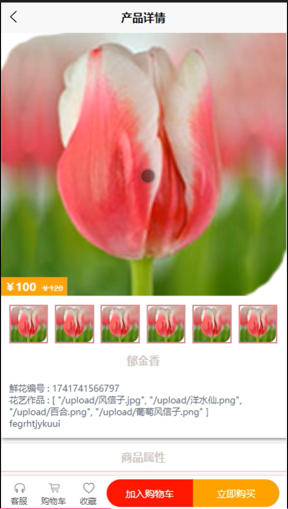 鲜花商城:在鲜花商城中,用户可以查看每种鲜花的详细信息,包括价格、库存和销量等,并能将喜欢的鲜花加入购物车或直接购买。支付方式支持微信、支付宝等多种渠道。此外,用户还可以咨询客服、点赞、收藏和评论商品,评论功能带有敏感词过滤机制。