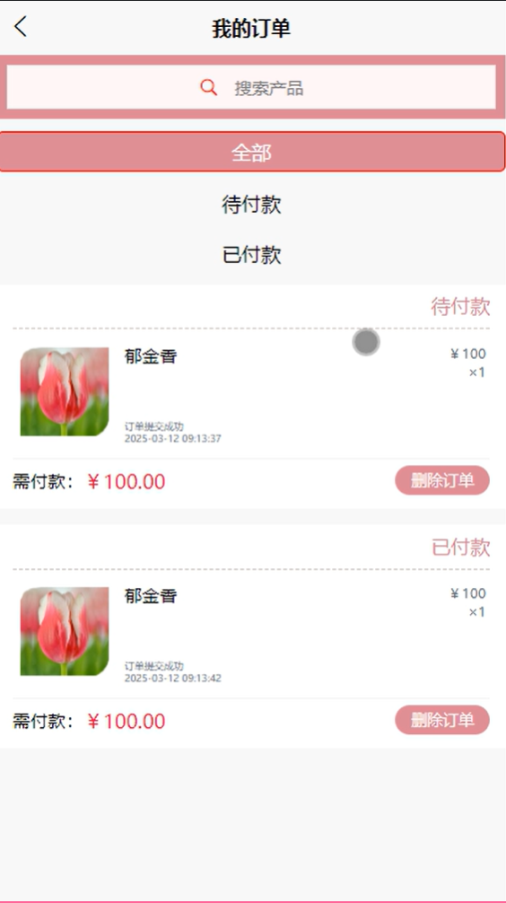 订单:用户可以查看所有订单状态,包括全部订单、待付款订单和已付款订单,便于跟踪订单进度。