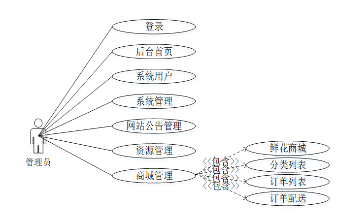 一家花店管理小程序的完整UML用例图分别是图3-1、3-2。