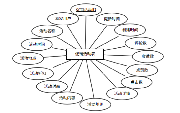 实体包含促销活动ID、卖家用户、活动名称、活动时间等属性,其中促销活动ID是主键,实体图如图4-12所示。