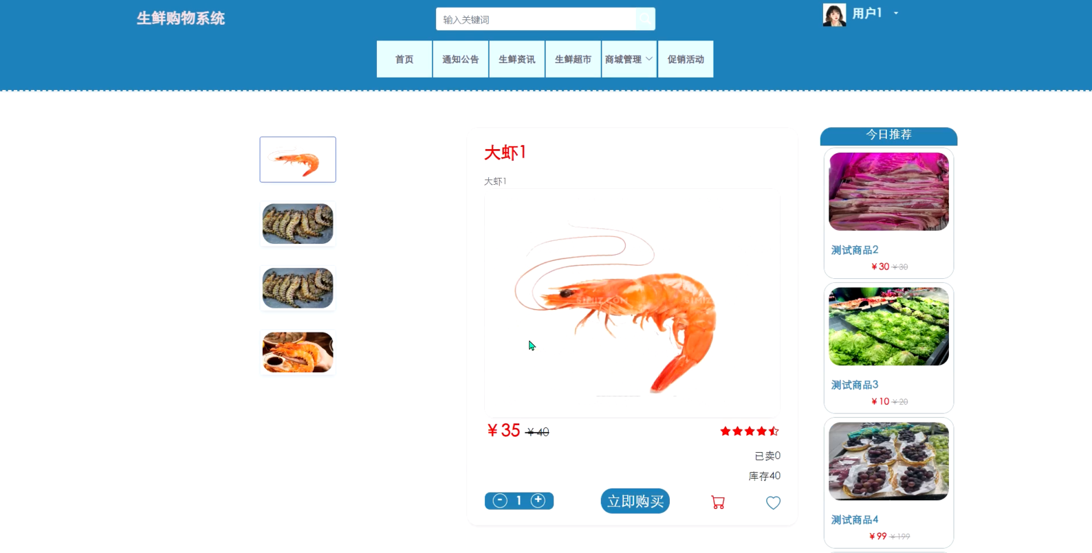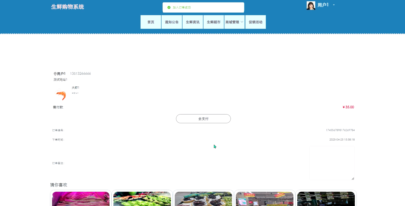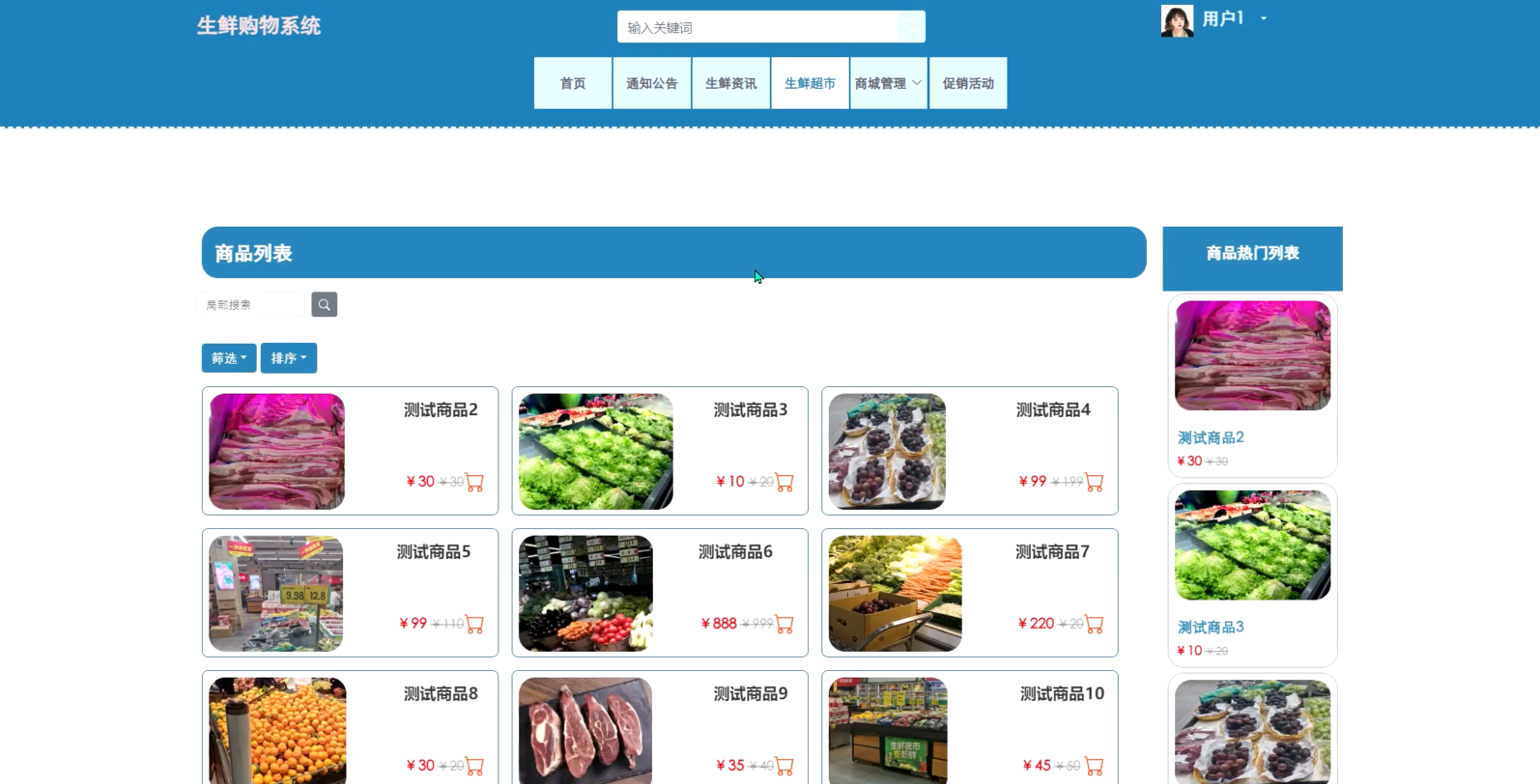 Key words: fresh food shopping system SpringBoot、Vue、MySQL、 E-commerce function