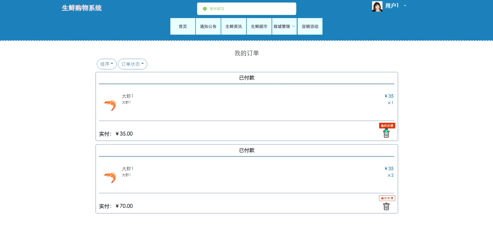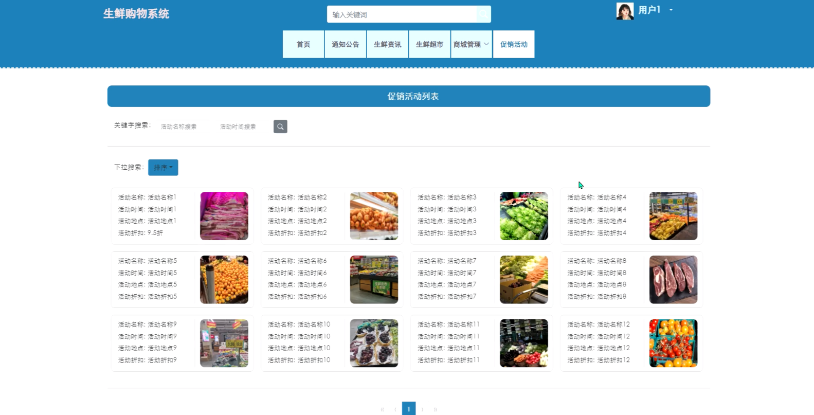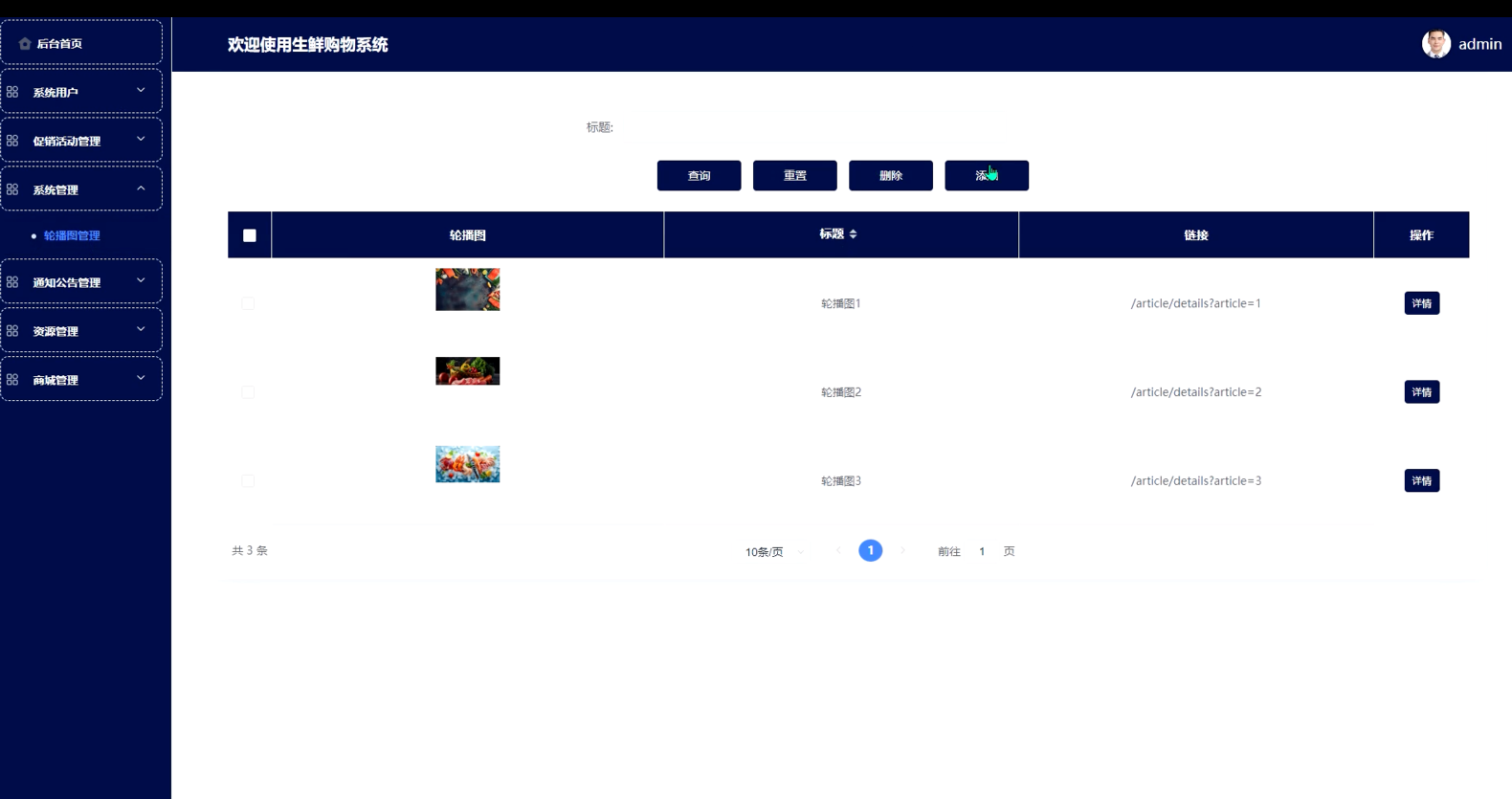 Key words: fresh food shopping system SpringBoot、Vue、MySQL、 E-commerce function