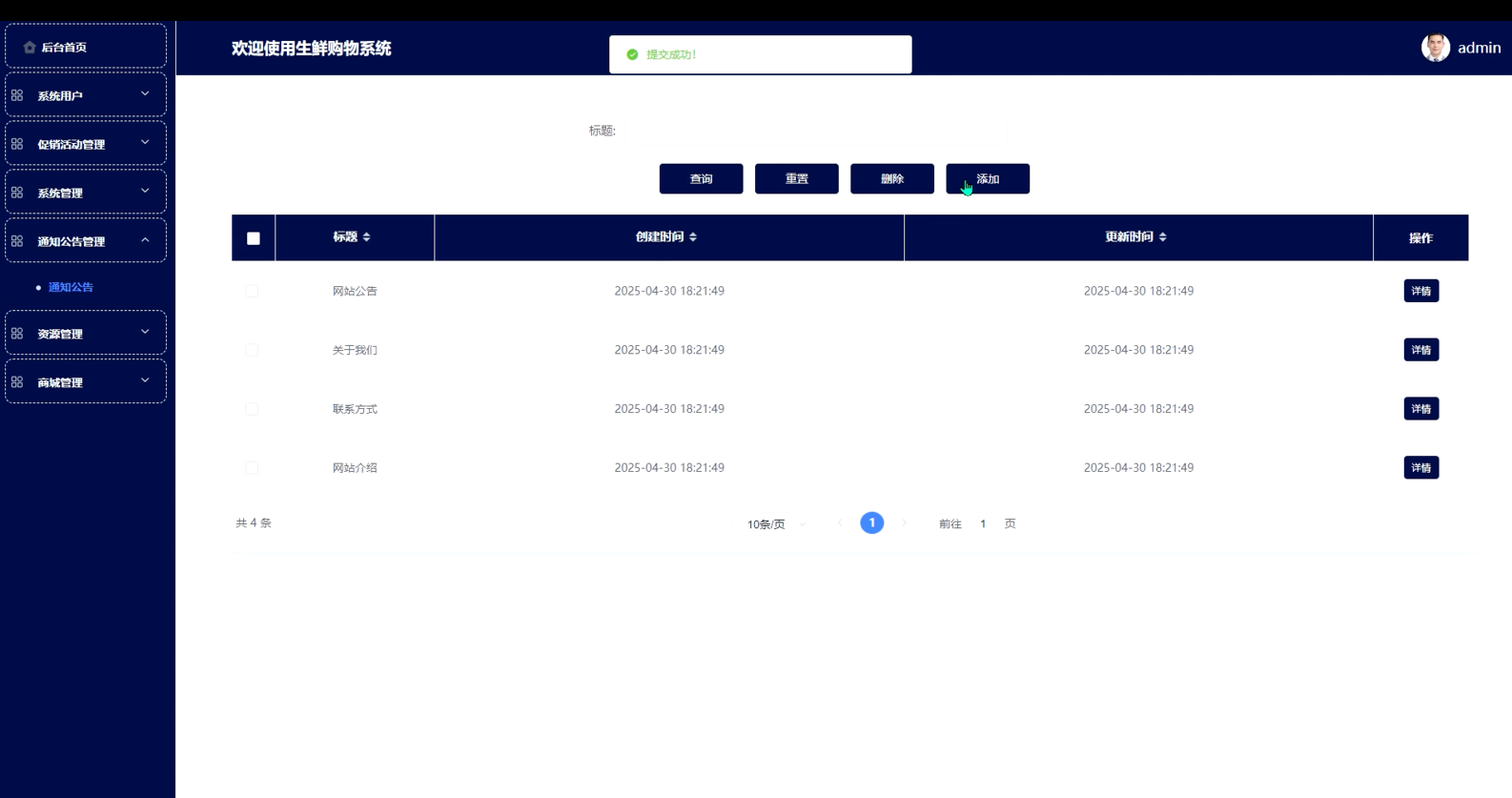 在操作层面,系统设计遵循用户友好原则,界面简洁直观,操作流程清晰易懂。用户无需复杂培训即可快速上手使用,无论是生鲜购买、订单管理还是售后申请等功能,均通过简洁的步骤实现。对于商家和管理员,系统后台管理界面提供直观的操作指引和丰富的功能模块,便于进行商品管理、订单处理和促销活动发布等操作。系统支持多终端访问,用户可通过电脑、手机等多种设备随时随地进行操作,进一步提升了操作的便捷性和灵活性。