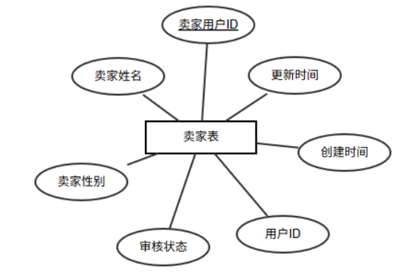 实体包含卖家用户ID、卖家姓名、卖家性别、审核状态等属性,其中卖家用户ID是主键,实体图如图4-13所示。