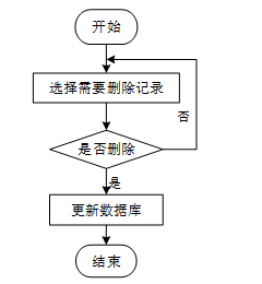 用户选择需要删除的记录后,系统判断是否确认删除。若未确认,返回选择环节;若确认删除,则更新数据库,删除对应记录,完成操作后流程结束。删除信息流程图如图3-8所示。