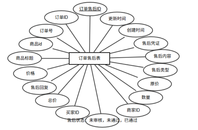 实体包含订单售后ID、订单ID、订单号、商品ID等属性,其中订单售后ID是主键,实体图如图4-11所示。