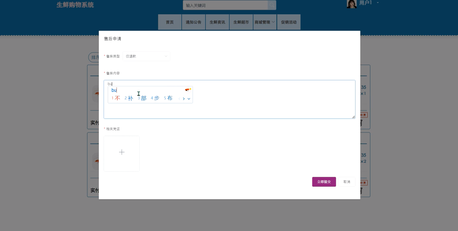 用户在订单详情页面点击申请售后按钮,填写售后原因、上传凭证等信息后提交申请。用户可以查看售后进度和处理结果。申请售后界面如图5-10所示。