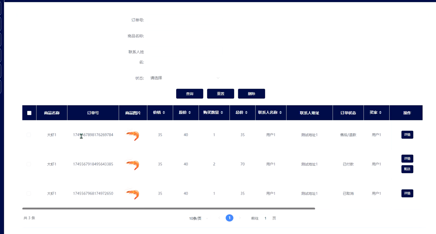 卖家可以查看所有订单的列表,包括订单状态、下单时间、订单金额等。卖家可以点击订单详情查看物流信息或处理订单。订单列表界面如图5-13所示。