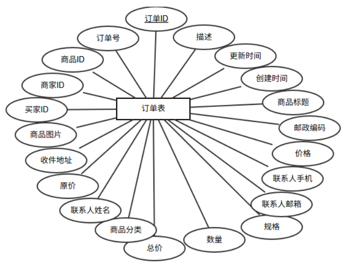 实体包含订单ID、订单号、商品ID、商品标题等属性,其中订单ID是主键,实体图如图4-10所示。